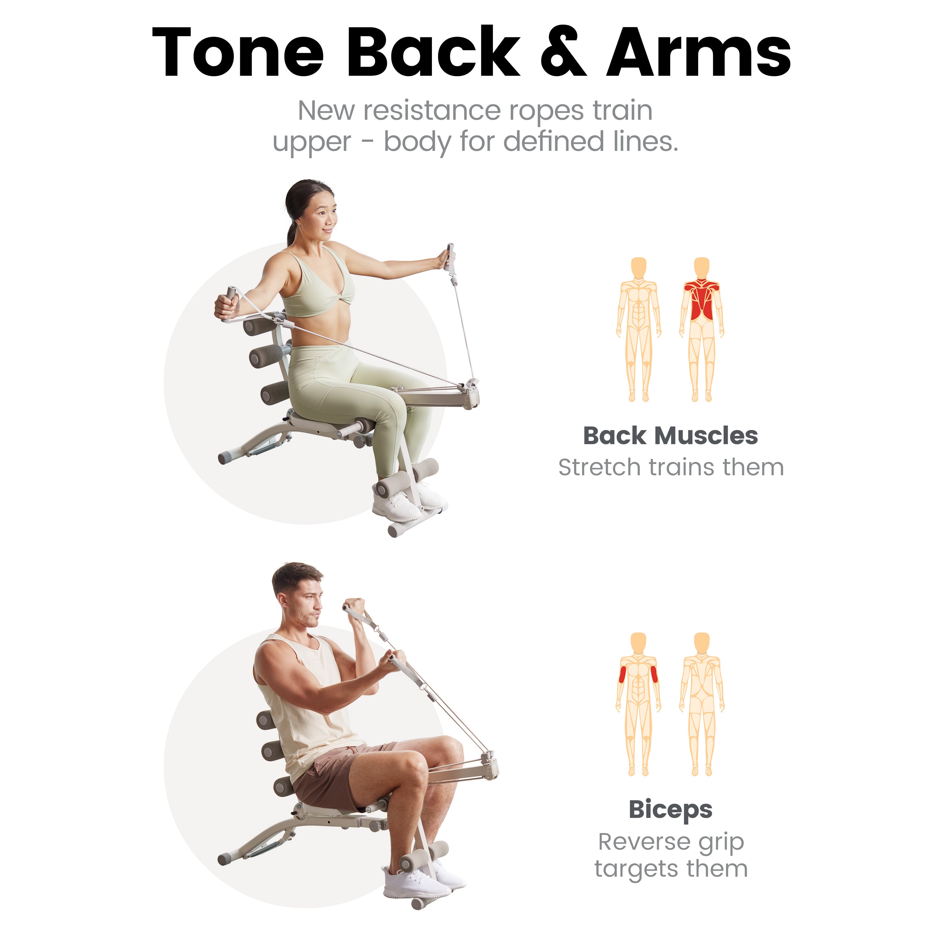 💪 Patented 8 Pulley Resistance Band System: Do rowing exercises, curl workout, raise workout, etc., which helps you get the muscle shredding results that you're looking for recently. If you really looking to step it up, you can get the advanced resistance bands options (search "WONDER CORE II Rowing Set") for even more definition in size.