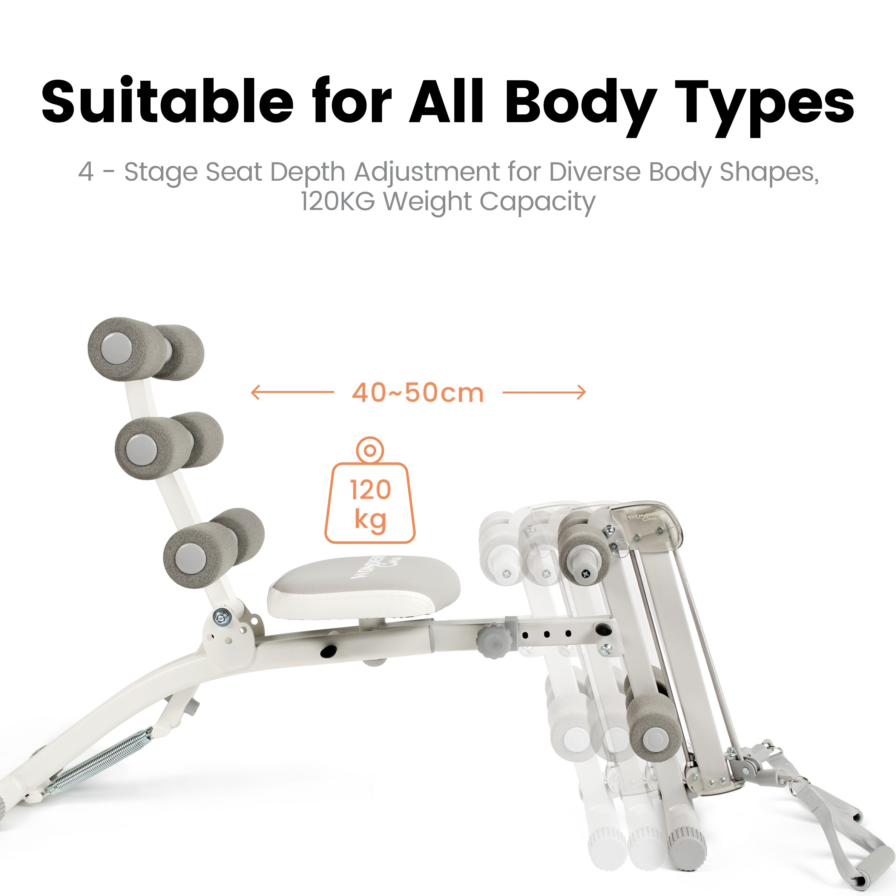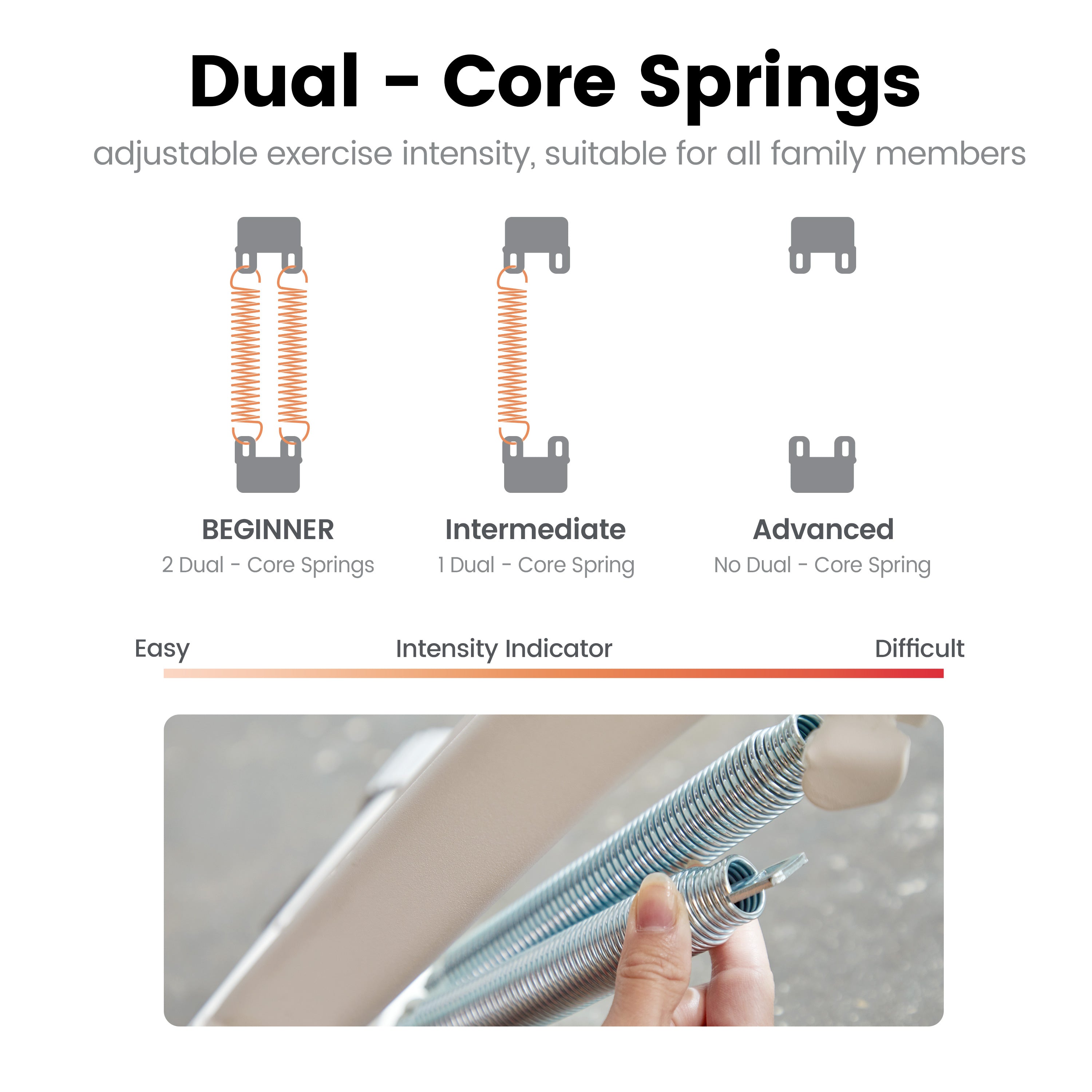 💪 Ingenious Spring System: Wonder Core Two equipped with 2 springs, which can help you get back to your starting position, it's like having the hands of a personal trainer there to spot you, this is perfect for older people or anyone that's just starting out. You can also adjust the resistance according to your level.