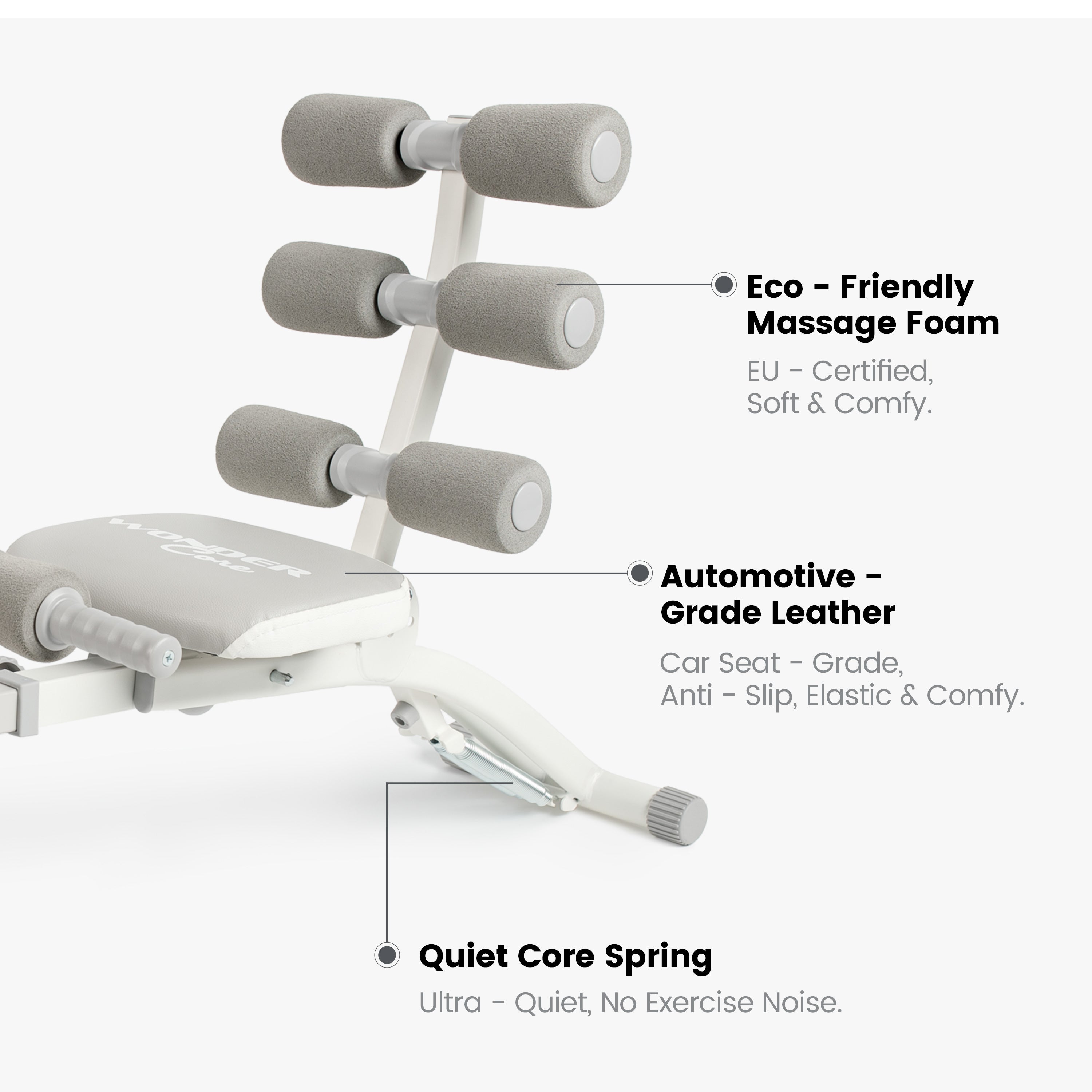 💪 360 Degree Foam Rollers: When you use your body's full range of motion, six plush 360 foam rollers support the sides of your back, and nothing at all ever touches your spine, a soft comfortable double stitch twisting seat that keeps you comfortable throughout your entire workout.